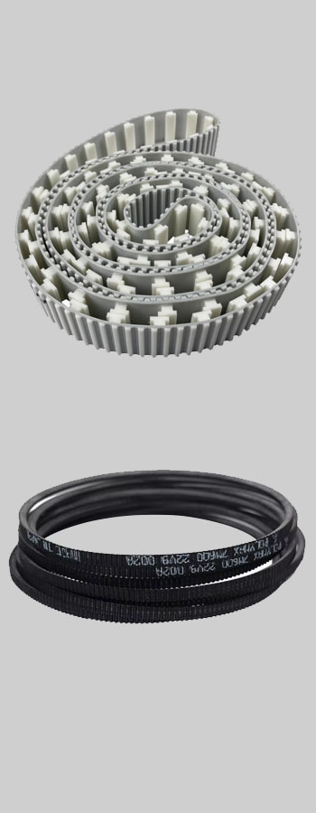 橡胶同步带、聚氨酯同步带、特种同步带、同步齿形带及各种规格配套同步带轮、开口带、铁氟龙输送带、三角带、六角带、广角带(水塔带)、多沟带(多楔带/多槽带)、联组带、异形带、变速带、圆带、片基带(平面高速带)、活络带、万能带、龙带、锭带、牵引带、印花导带、非标加工带及各种型号材质的工业皮带,并可在皮带上加挡板、导条、裙边、海绵、泡棉、红胶、PU材料、PVC材料、花纹、帆布、开槽、打孔、包边、转弯、接驳,各种皮带齿轮、齿轮成型刀具、皮带张力器、轴承、轴套、联轴器。